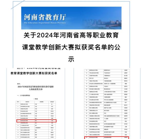 近日,河南省教育厅公布了2024年河南省高等职业教育课堂教学创新大赛的获奖名单,MILE米乐官方网站再次传来捷报,荣获一等奖一项、二等奖一项,续写了学院在教育教学创新方面的辉煌篇章。