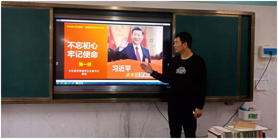 学生支部书记普俊以“不忘初心、牢记使命,做新时代奋斗者”为题的讲课,他以“奋斗”为切入点阐述了要实现中华民族伟大复兴,全党必须付出更为艰巨,更为艰苦的努力,号召全体党员为之奋斗。