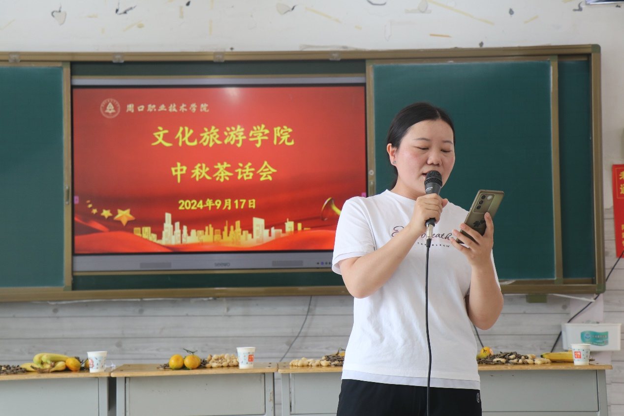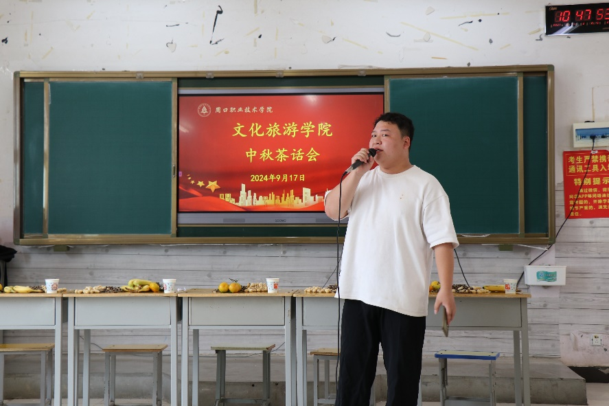 首先,我院党总支书记展贤东代表学院为同学们送上中秋节的美好祝福,希望来自不同省份的学生在文旅学院感受到家的温暖,在此次活动中收获开心与幸福。他鼓励同学们要培养自身德、智、体、美、劳等全面发展,积极锻炼身体不熬夜,通过参加课外活动和日常劳动提升美育和劳育能力;要勇于发挥自身优势,积极参与学校的实践活动,以干促学,明确个人的兴趣和激情所在,设定好目标基础,不断扩展自己的知识和技能,为国家发展和民族团结贡献自己的力量。