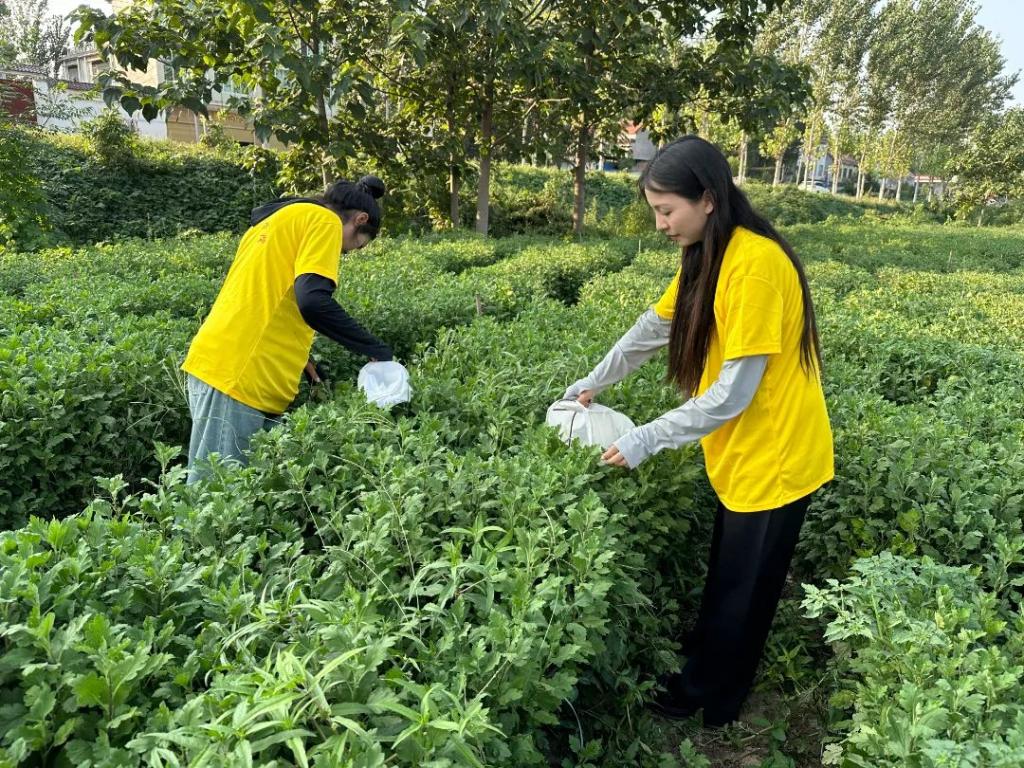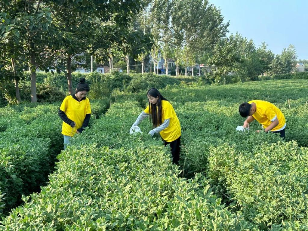 志愿者们精神抖擞、热情高涨、干劲十足。大家三五一组,既有分工,也有合作,挥锹挖穴,扶苗固土,修正浇水。志愿者们手拿剪刀与花农一起在田间修剪菊花枝节。通过修剪,可以有效改善架面通透性,同时避免枝条旺长浪费营养,有利于菊花更好的授粉开花。