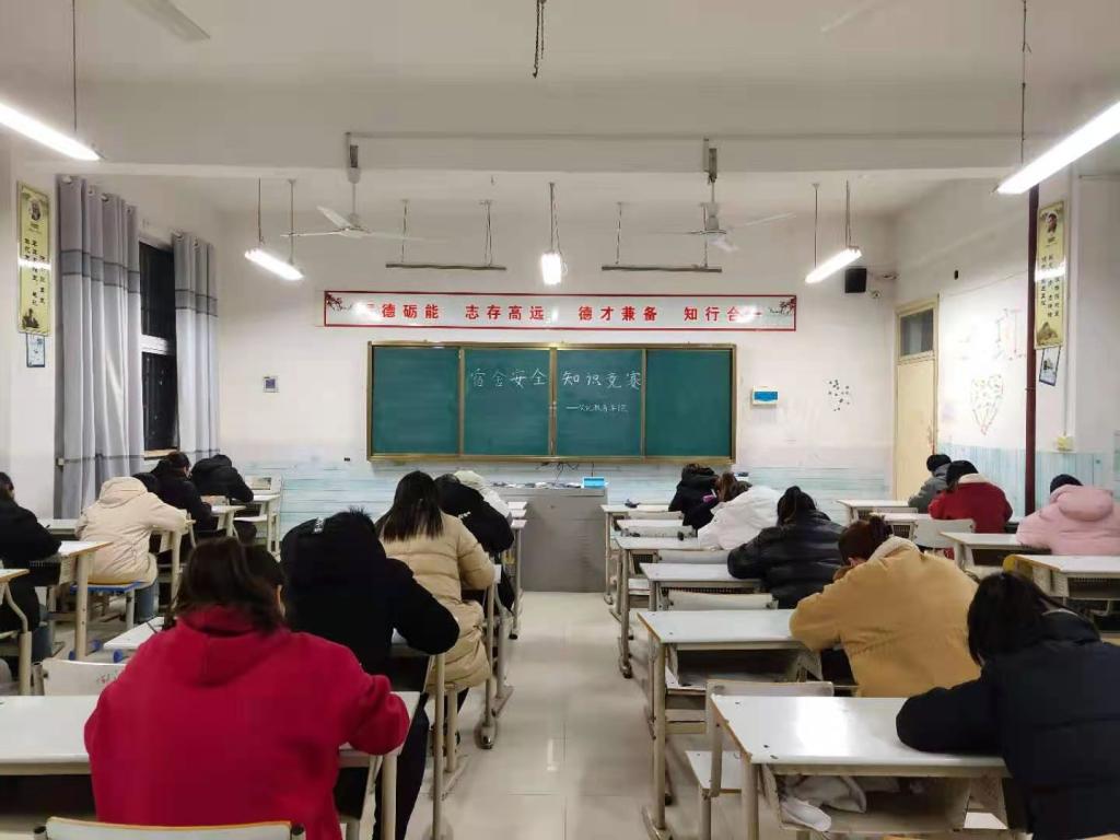 为了进一步加强同学的安全防范意识,帮助同学们养成良好的生活习惯,提高自我管理,自我保护能力,普及校园安全知识,活跃校园寝室文化氛围,营造“文明、和睦、安全”宿舍。文化教育学院于12月9日进行了“宿舍安全知识竞赛”。