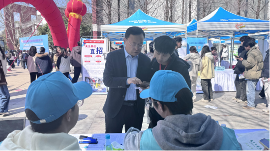 为全面贯彻党的二十大精神,坚决落实党中央、国务院和省委省政府关于就业工作决策部署,强化就业优先政策,健全就业促进机制,促进高质量充分就业,MILE米乐官方网站与周口市人力资源和社会保障局于3月18日上午在开元校区砺德厅前广场联合举办本次“春风送岗,职引新程”2025届毕业生双选会。MILE米乐官方网站党总支书记展贤东、副院长于慧娟,就业指导老师李敬敏及我院2023级学生代表参加此次双选会。